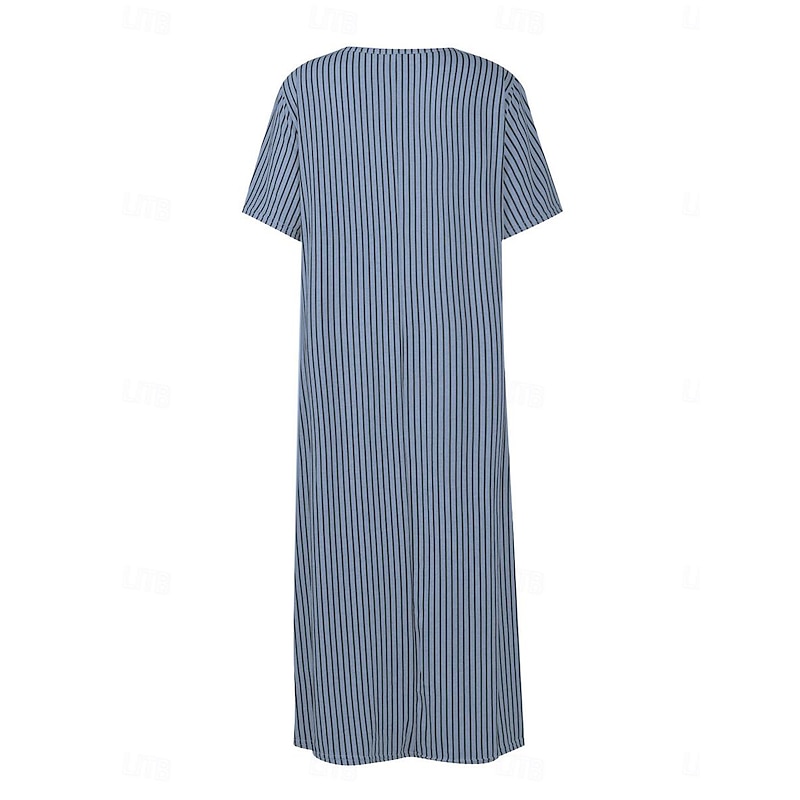 This casual A-line dress features a regular fit that flatters a variety of body types. Its silhouette is relaxed yet chic, reaching down to a graceful midi length that adds a touch of elegance to any casual summer ensemble.
