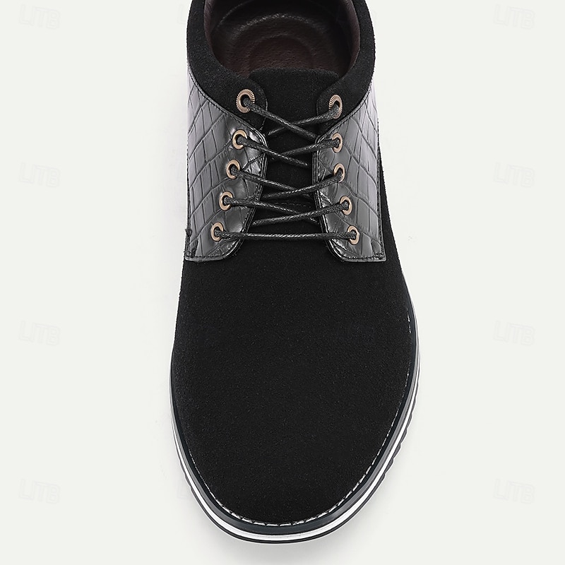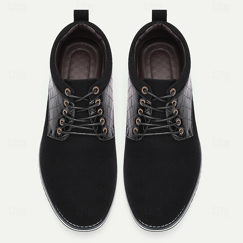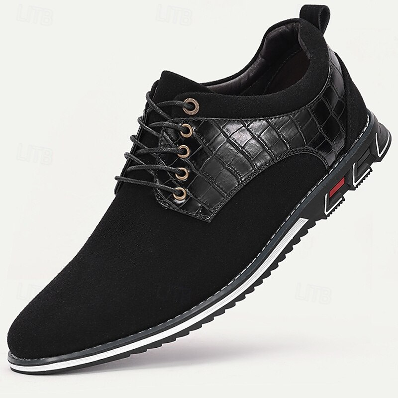 Men's Black Lace-Up Dress Shoes with Crocodile Pattern, Sleek and Stylish for Corporate and Social Gatherings 1