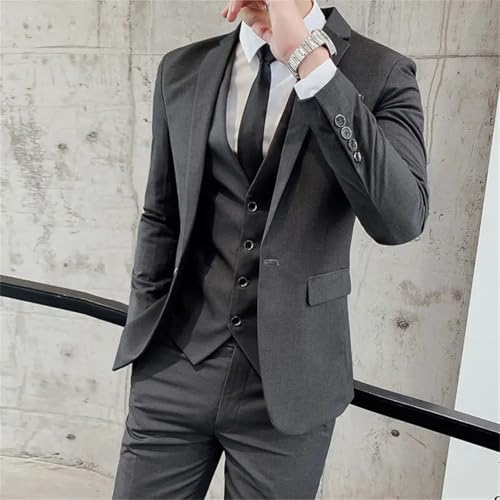 Men (Suit + Vest + Trousers) Three-Piece Solid Color Korean Version of The British Slim-Fit Weddin Suit 5