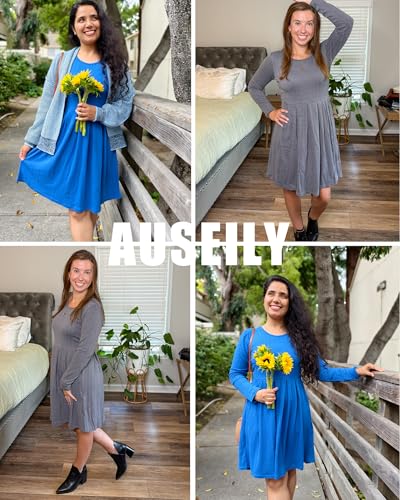 More information about AUSELILY Long Sleeve Dress Women 2025 Crew Neck Fall Dresses Casual Knee Length Dress with Pockets