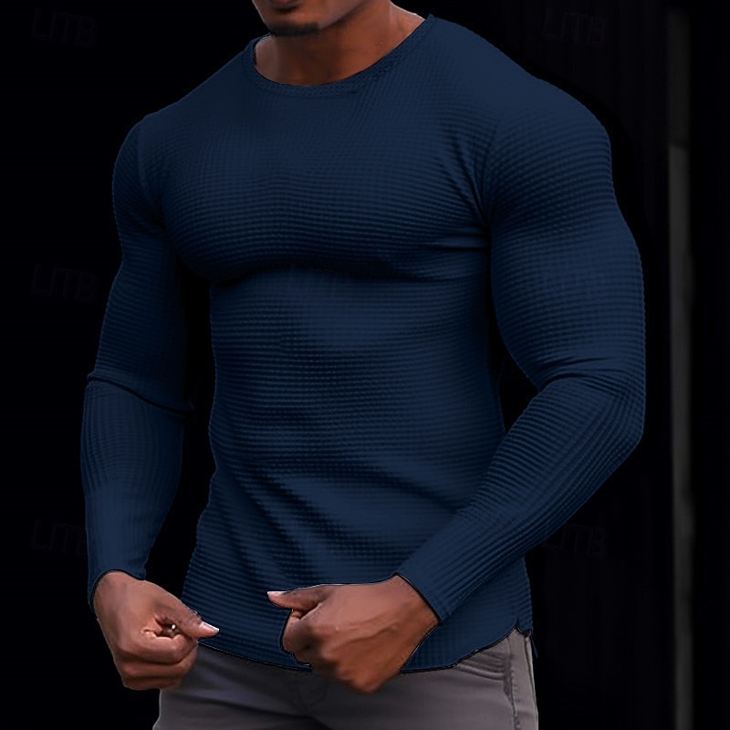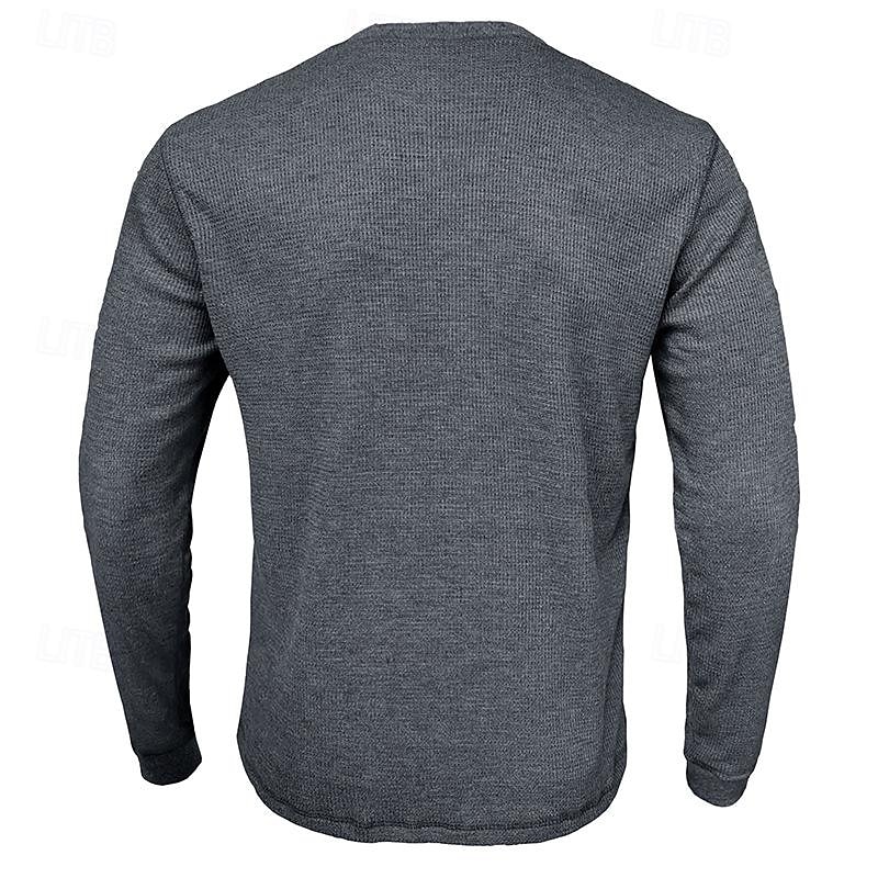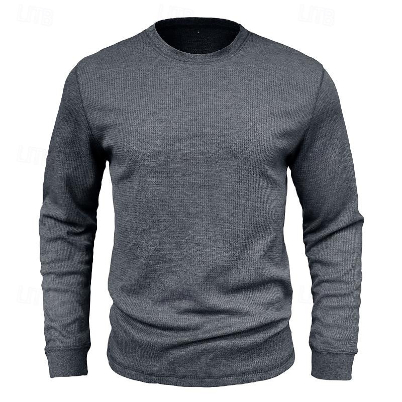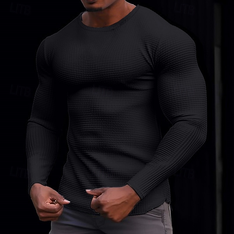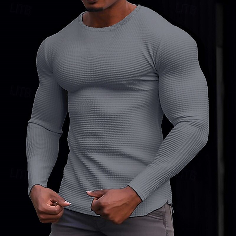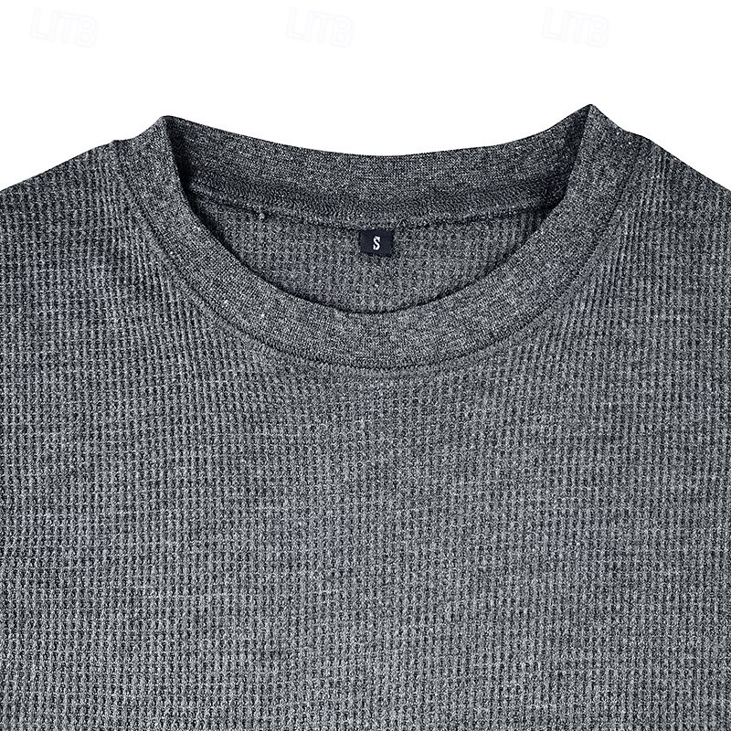More information about Men's Waffle Shirt T Shirt Tee Top Long Sleeve Shirt Long Sleeve Crew Neck Spring & Fall Plain Fashion Designer Basic Knitted Vacation Street Going out Dark Brown Dark Grey Black Top Tee for Men