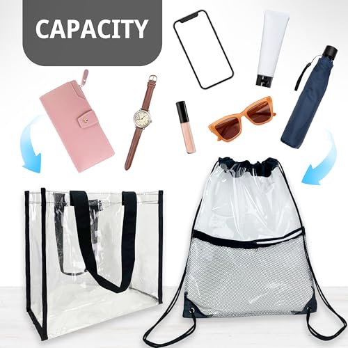 • 【Stadium Approved】The clear drawstring backpack and clear tote bag for stadium events size is approved, suitable for stadium events, concerts etc which need clear bag. Pass security quickly without missing any wonderful moments.