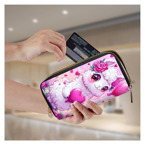 HOT ! Wristlet Wallet for Women Teen Girls Womens Wallet RFID Blocking Credit Card Holder with Removable Wristlet,Leather Phone Wallet Clutch Large Capacity Ladies Travel Purs,Cute Love Heart Alpacas