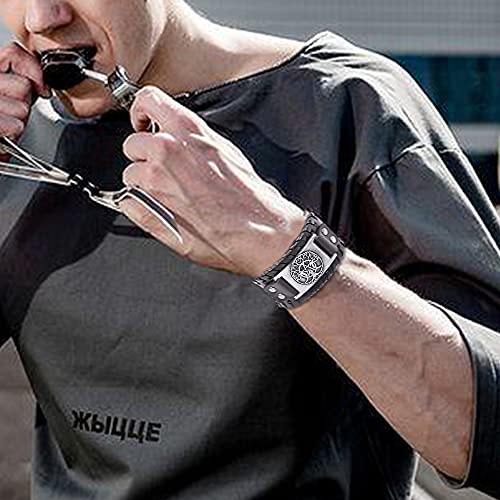 • TURTLEDOVE DESIGN - The size of this Viking bracelet is 11.5*1.6 inch. This medieval leather bracelet is a perfect combination of metalwork and leather rope chain of a Celtic knot design. The metalwork is engraved Nordic amulet, which is Gothic jewelry style.