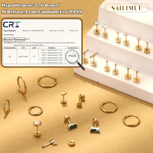 More information about SAILIMUE 14K Gold Plated Flat Back Stud Earrings for Women | Hypoallergenic Surgical Stainless Steel Earrings | Screw Back Earrings Sets for Multiple Piercing | Small Cartilage Earring Studs