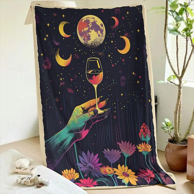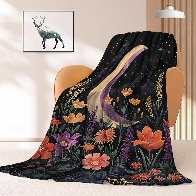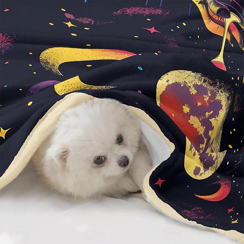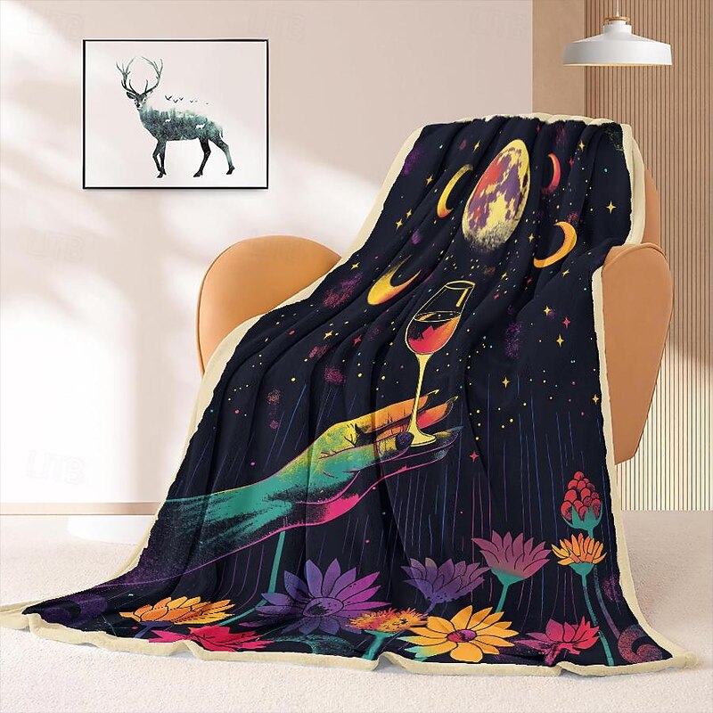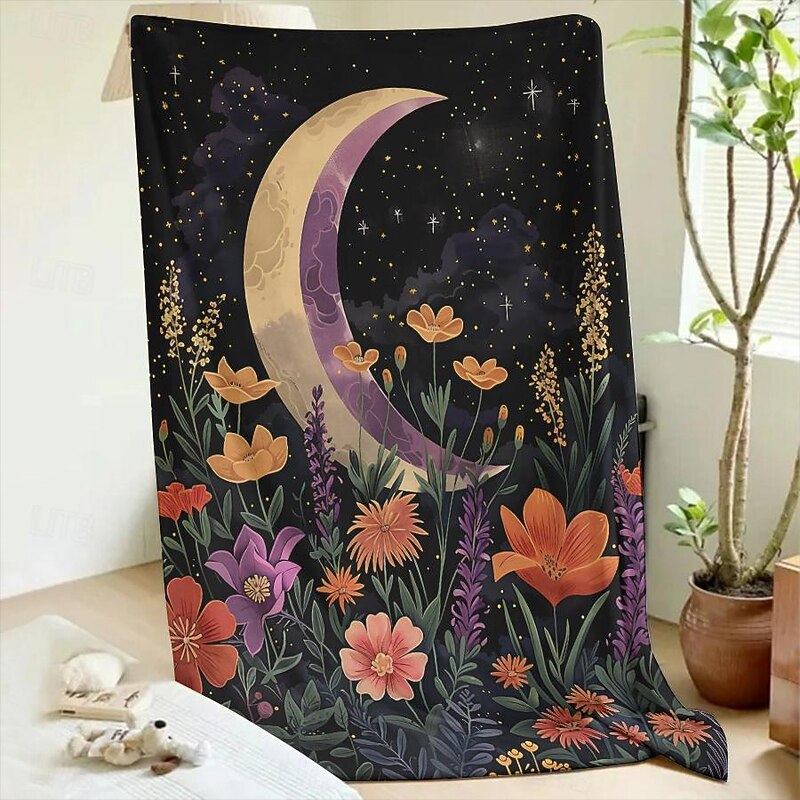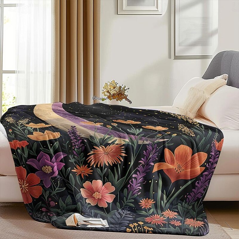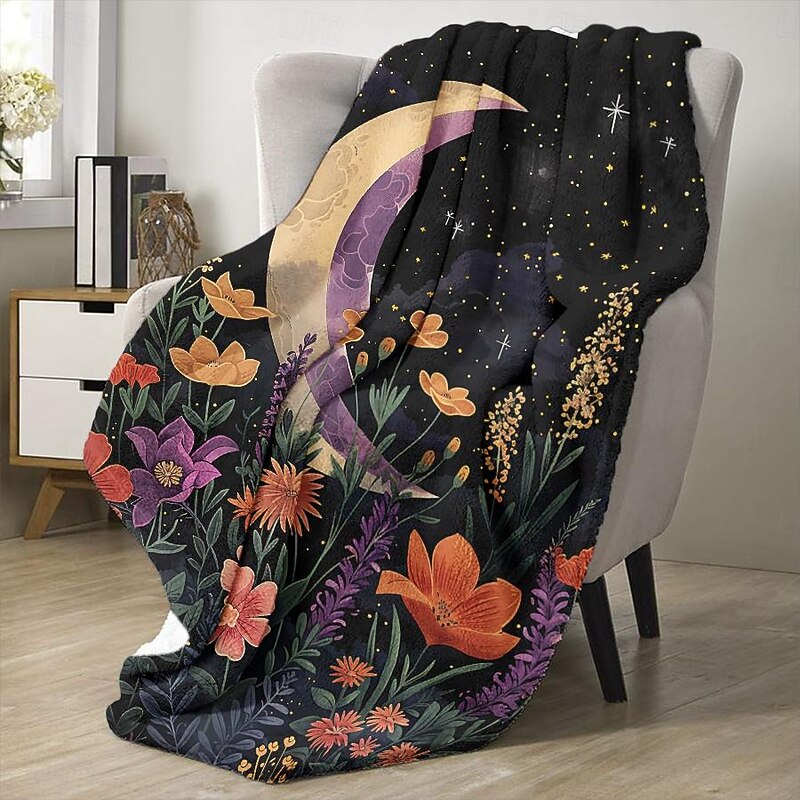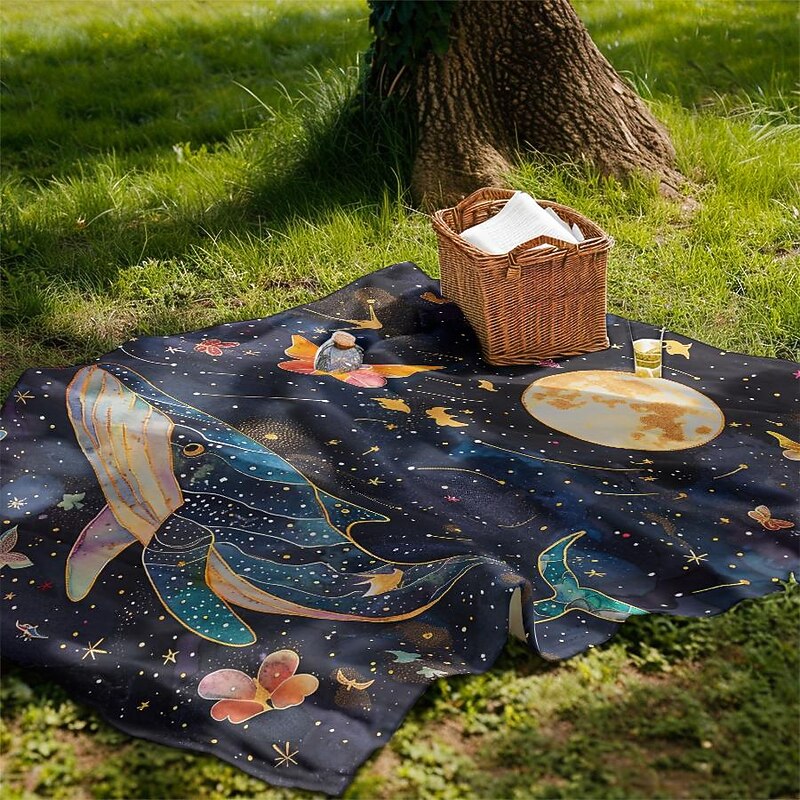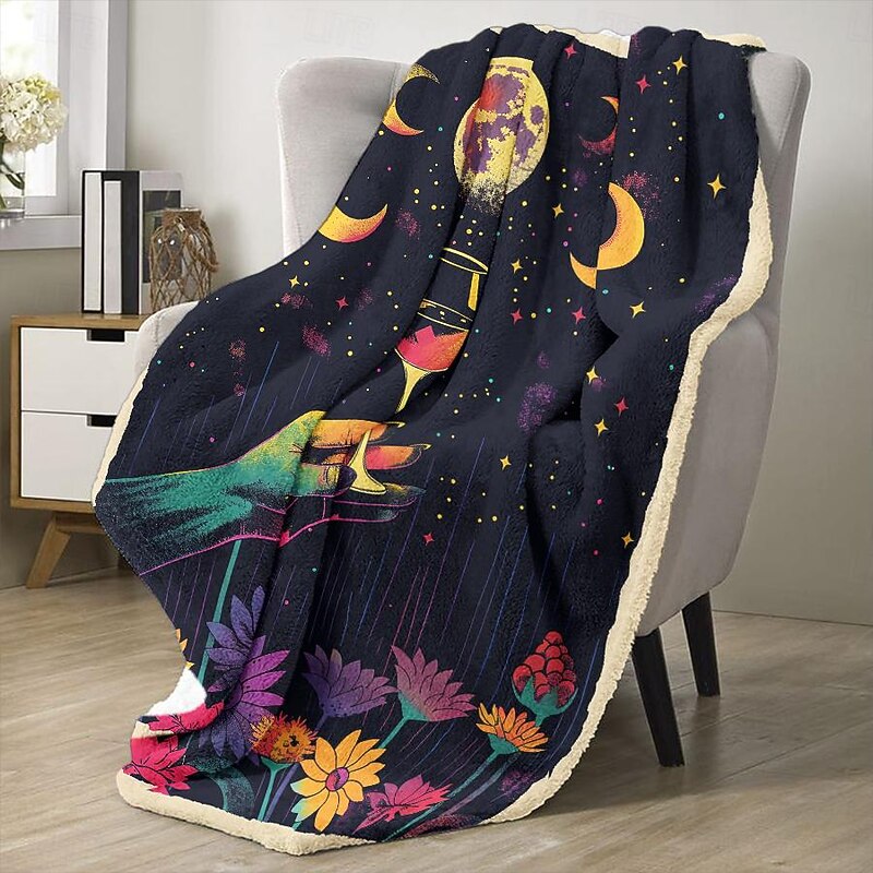 Highlights [Fabric] : Crafted from premium flannel toison and polyester, this throw blanket offers a luscious, soft texture for a cozy and comfortable experience. The high-quality materials promise warmth and durability for use throughout all seasons. [Design] : Featuring a captivating celestial display, this blanket boasts a starry night sky dotted with graceful whales and delicate golden butterflies. The deep navy background provides a stunning contrast to the light blue and gold hues, enhancing its magical ambiance. [Design Highlights] : The blanket utilizes a reactive printing technique with a 3D effect that vividly brings the intricate pattern to life. Its lightweight construction makes it easy to drape or fold, ensuring that it can be effortlessly styled within your living space. [Occasions] : Ideal for adding a touch of whimsy to your home decor, this blanket is perfect for snuggling on chilly evenings or as a decorative piece on beds, sofas, or chairs. Its versatility makes it suitable for any season and occasion, whether relaxing at home or hosting gatherings. [Size Notice] : Available in multiple sizes to fit your needs, including 100x130cm (39x51in), 130x150cm (51x59in), and 150x200cm (59x79in), ensuring the right fit for everyone.