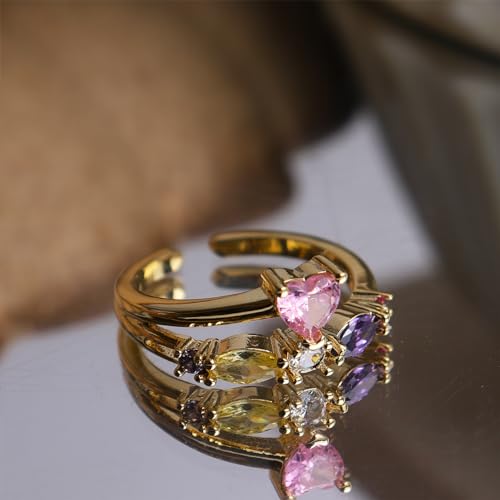 Sonateomber Gold Pink Heart Adjustable Statement Love Ring for Women Trendy Cute Purple CZ Open Stackable Ring Prom Wedding Jewelry Gift 3