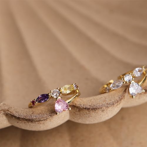 Sonateomber Gold Pink Heart Adjustable Statement Love Ring for Women Trendy Cute Purple CZ Open Stackable Ring Prom Wedding Jewelry Gift 7
