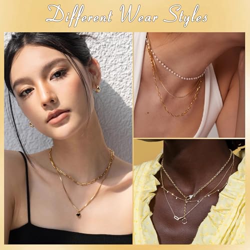 • Layered Gold Paperclip Necklace Set: Elevate your style with this versatile non-tarnish gold set featuring two distinct chains: a sleek paperclip link and an elongated chain with interlocking pendants. Wear each minimalist piece solo, layer them with your favorite necklaces, or combine both for an instant, elegant look. This effortlessly stackable design adapts to any outfit or mood, beautifully highlighting your individuality.