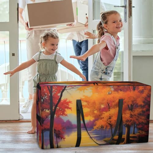 More information about Sunset Forest Extra Large Moving Bags Heavy Duty Storage Bags Modern Forest Cloth Wrap Around Handles Double Zipper Reusable Convenient Foldable Storage Tote for Travel Camping Space Save