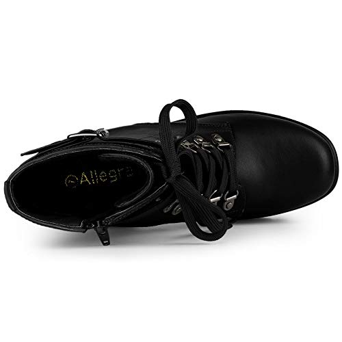 Allegra K Women's Zip Chunky Heel Platform Ankle Combat Boots 4