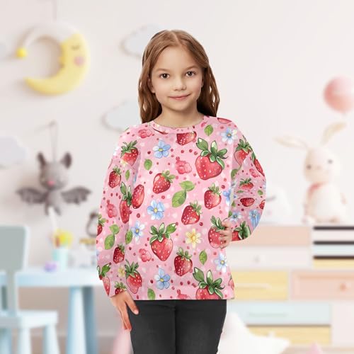 JUNZAN Cute Strawberries and Blue Flowers Pink Kids Boys Hooded Sweatshirt Fleece Sweatshirt With Hoodie Athletic 4T 1