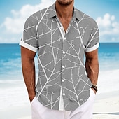 Men's Geometric Casual Shirt Button Up Shirt Short Sleeve Fashion Casual Vacation Holiday Streetwear Summer Spring Turndown 3D Print Collared Shirts Dark Blue Light Blue Gray 7