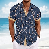Men's Geometric Casual Shirt Button Up Shirt Short Sleeve Fashion Casual Vacation Holiday Streetwear Summer Spring Turndown 3D Print Collared Shirts Dark Blue Light Blue Gray 9