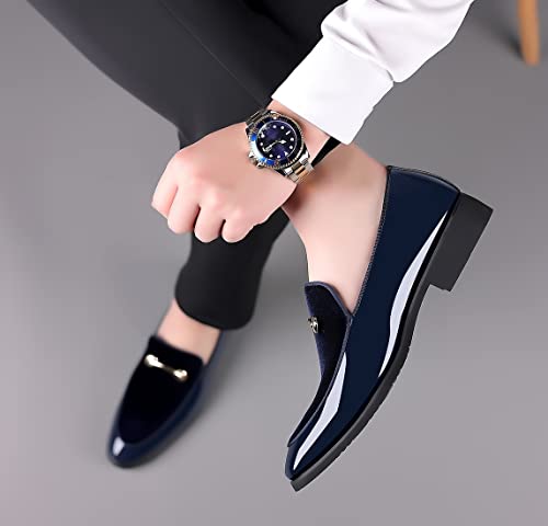 Santimon Mens Slip On Loafers Smoking Slipper Gold Buckle Moccasins Moccasins Casual Formal Business Wedding Shoes 7