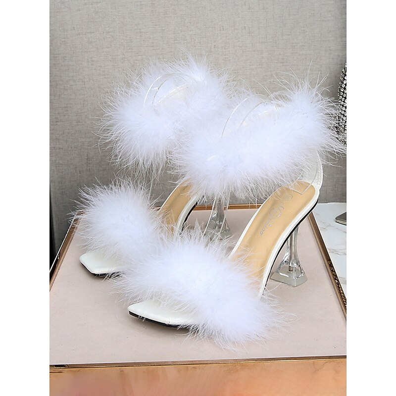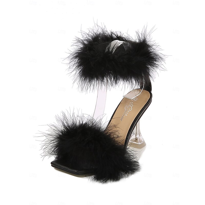 Highlights - Luxurious faux fur upper - Comfortable chunky heel - Stylish open toe design - Durable rubber outsole