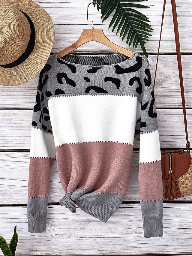 Highlights [Fabric] Crafted from high-quality polyester, this women's sweater offers a cozy and comfortable feel with its micro-elastic ribbed knit. The soft fabric ensures warmth, making it ideal for the fall and winter seasons. [Fit] The sweater features a loose fit silhouette with a relaxed style, allowing for easy layering over other clothing items. Its regular length and V-neck design add to its casual elegance, perfect for various body types. [Design Highlights] Showcasing a chic mix of leopard and striped patterns, this sweater includes a playful color palette of pink, gray, and white. The ribbed knit style and long sleeves elevate the overall design, providing a fashionable touch to your wardrobe. [Occasions] Suitable for daily wear, outdoor activities, and weekend gatherings, this versatile sweater can be dressed up or down. It's an excellent choice for those seeking a stylish yet comfortable option for casual settings. [Size Range] Available in sizes S, M, L, XL, and 2XL, ensuring a perfect fit for a wide range of body shapes and personal style preferences.