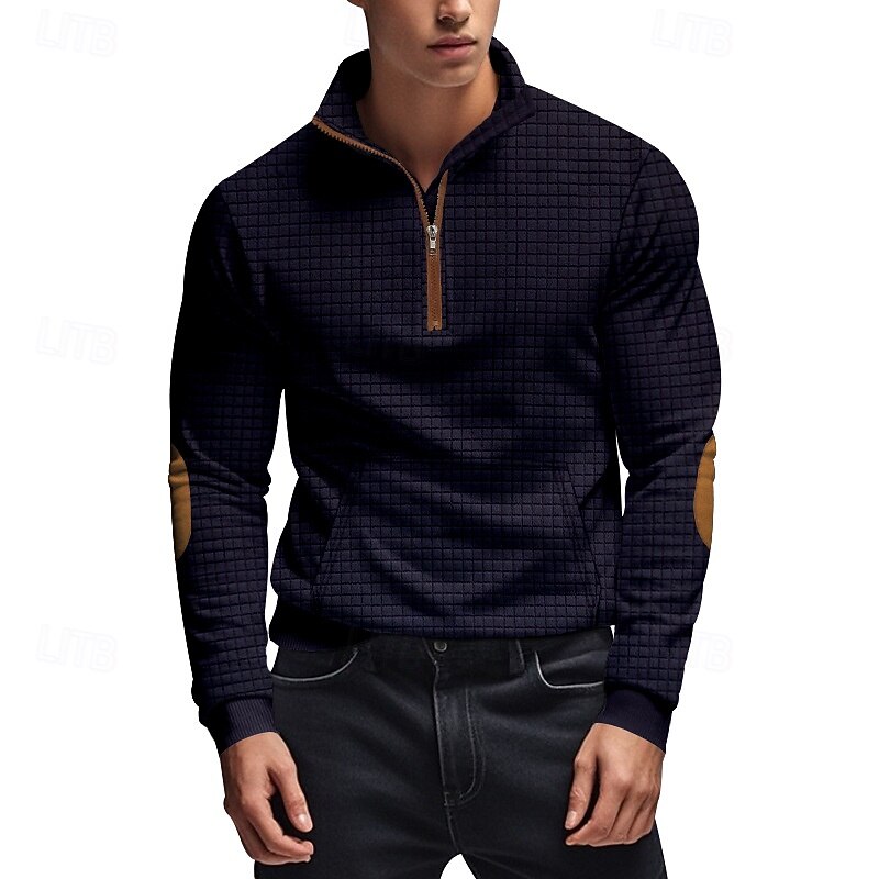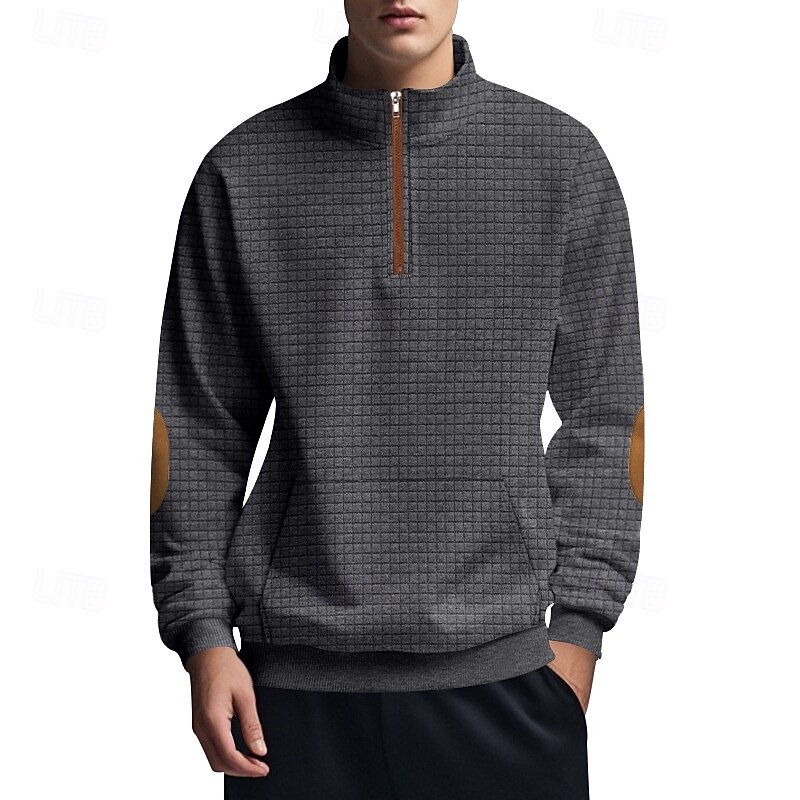 More information about Men's Sweatshirt Quarter Zip Sweatshirt Black White Navy Blue Light Grey Dark Gray Half Zip Color Block Ribbed Front Pocket Textured Sports & Outdoor Daily Holiday Polyester Streetwear Basic Casual