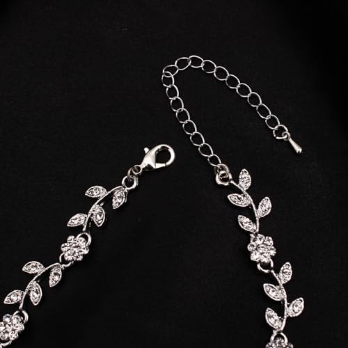 Austrian Crystal Rhinestone Choker Necklace Elegant Flower Leaf Chain Necklace Jewelry for Party Prom Costume Accessories for Women 4