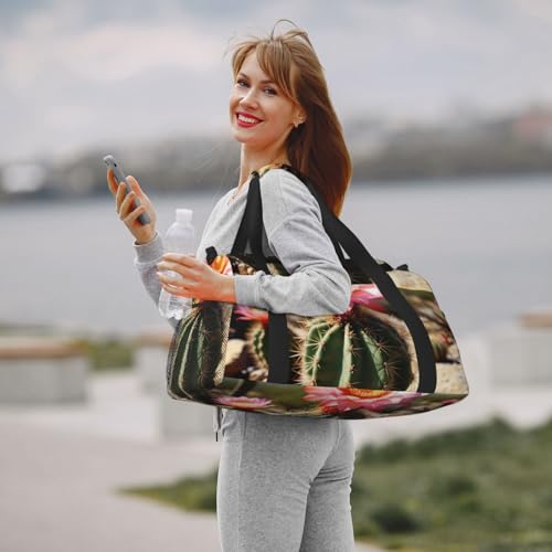 HOT ! Cactus Floral Bloom Print Travel Duffle Bag - Foldable Personal Item Travel Bag for Women & Men,Carry-On Convertible Crossbody Tote Bags with Adjustable Shoulder Strap & Pockets 13x10.2x19.7 in
