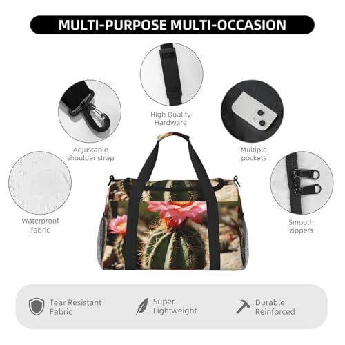 Cactus Floral Bloom Print Travel Duffle Bag - Foldable Personal Item Travel Bag for Women & Men,Carry-On Convertible Crossbody Tote Bags with Adjustable Shoulder Strap & Pockets 13x10.2x19.7 in 5