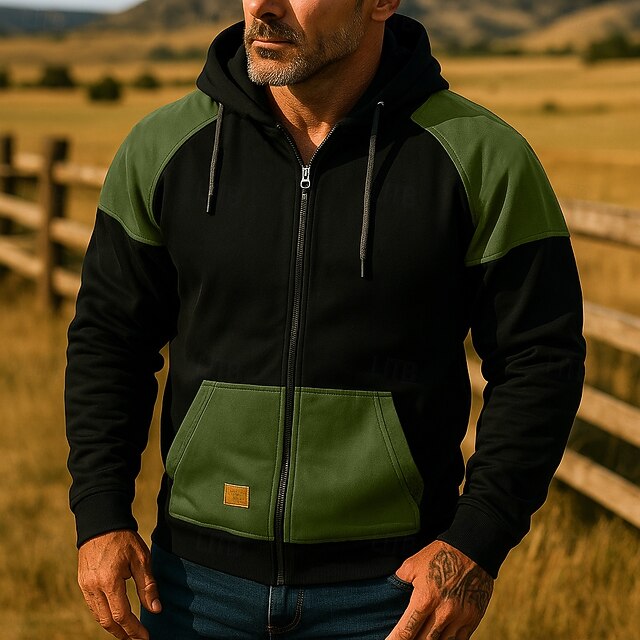 More information about Men's Hoodie Full Zip Hoodie Fleece Hoodie Tactical Hoodie Red Blue Green Khaki Coffee Hooded Plain Zipper Color Block Sports & Outdoor Casual Daily Streetwear Cool Sportswear Spring & Fall Clothing