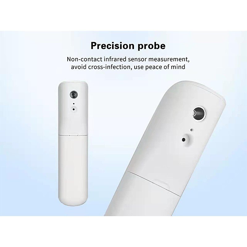 Highlights Product Selling Points: 1. Clinically Accurate Readings: This infrared forehead thermometer can provide accurate readings within 1 second, ensuring a worry-free and precise temperature measurement. 2. Versatile Measurement: With non-contact technology, this thermometer can measure not only body temperature but also the temperature of objects and liquids, ensuring a safe and hygienic temperature measurement. 3. High Temperature Alarm: Featuring an alarm system, this thermometer will alert you with a didi warning sound in case of abnormal high temperatures, ensuring your safety. 4. Lightweight and Portable: With its compact and lightweight design, this thermometer is easy to carry and use wherever you go, making it convenient for travel or home use. 5. Real-time Temperature Recording: This thermometer can record and store up to 32 temperature readings, allowing you to compare and track temperature changes before and after an event or illness.