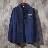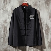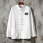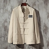 More information about Men's Linen Shirt Casual Shirt Button Up Shirt Plain Vacation Street Black White Dark Navy Beige Long Sleeve Grandad Collar Spring & Summer Clothing Apparel Pocket