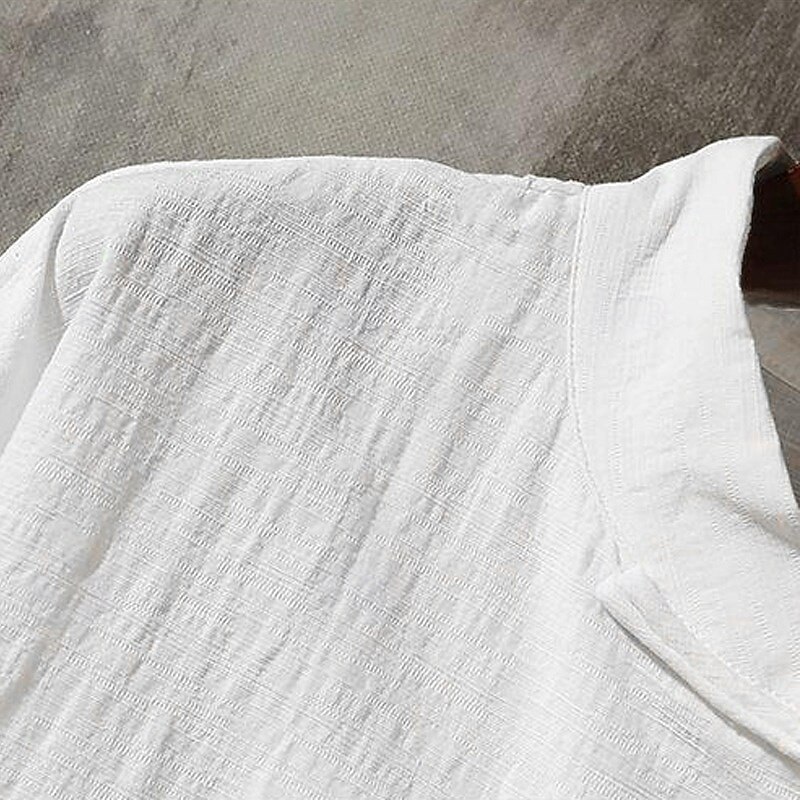Men's Linen Shirt Casual Shirt Button Up Shirt Plain Vacation Street Black White Dark Navy Beige Long Sleeve Grandad Collar Spring & Summer Clothing Apparel Pocket 11