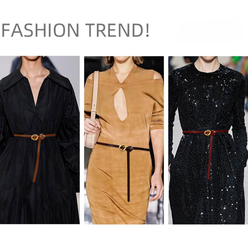 More information about Ladies Cowhide Leather Soft Knotted Strap Belts Knot Tie Belt Narrow Non Buckle Adjustable Belts for Dress Jeans
