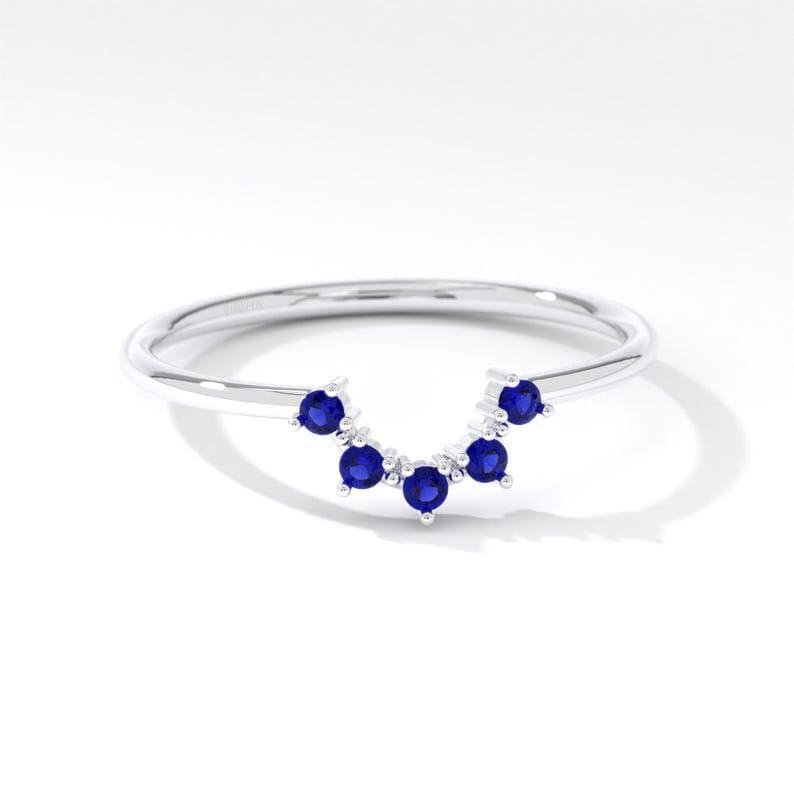 V Shaped Sapphire Engagement Ring 14K Solid Gold Chevron Band, Multi Birthstone Curved Wedding Band Women, Five Blue Wishbone Ring - GJH193 1