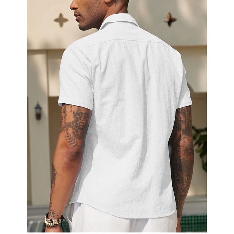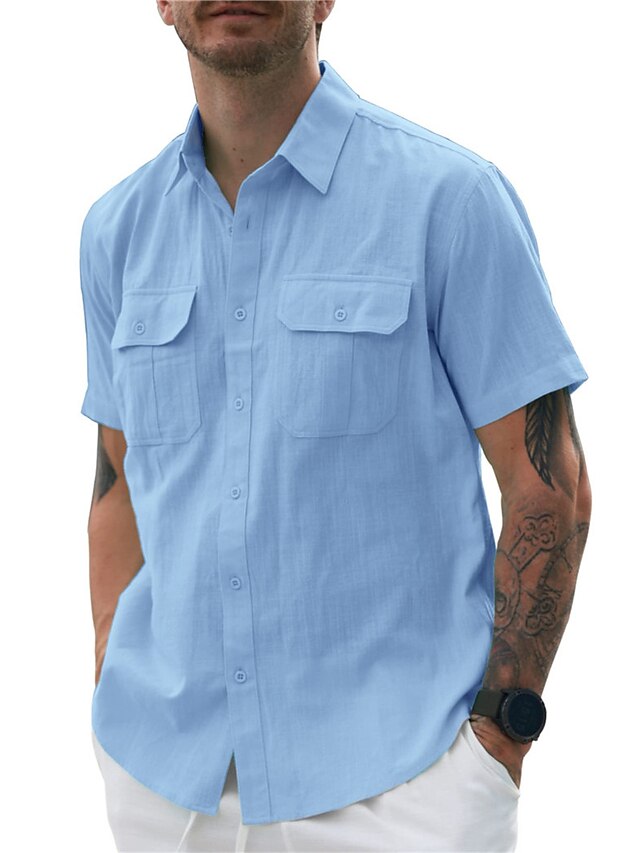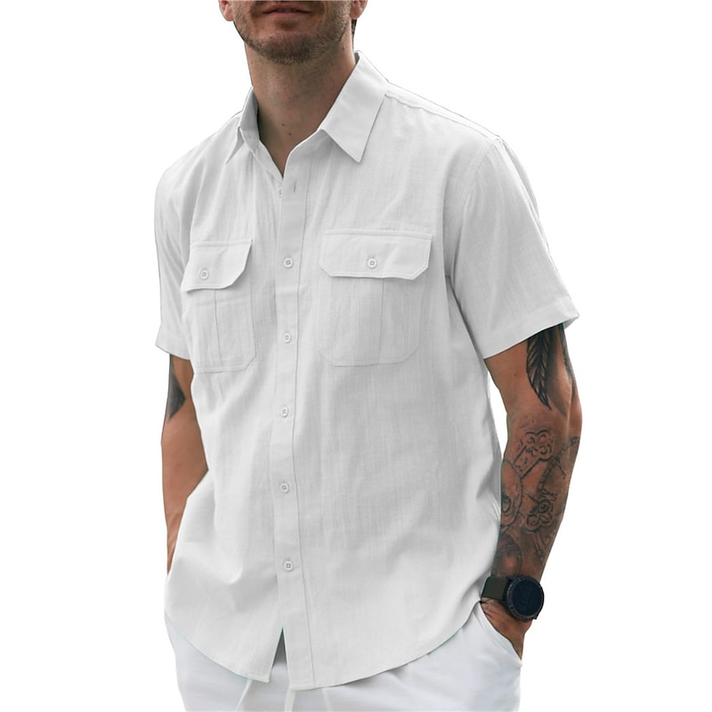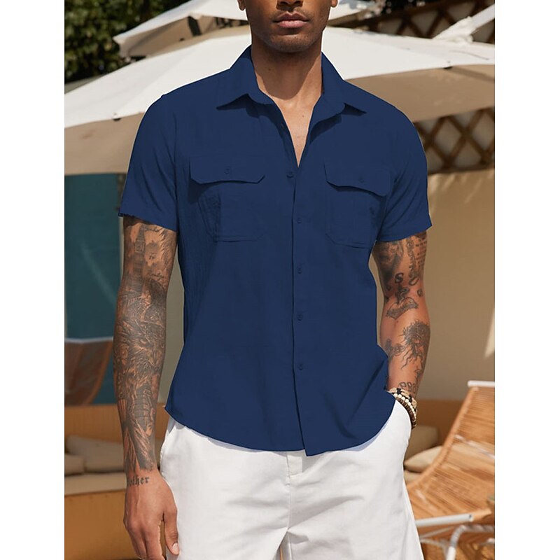 Men's Shirt Summer Shirt Casual Shirt Beach Shirt Button Up Shirt Black White Navy Blue Apricot Gray Short Sleeve Plain Lapel Vacation Daily Front Pocket Clothing Apparel Polyester Fashion Casual 19