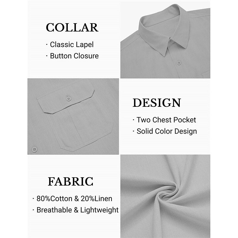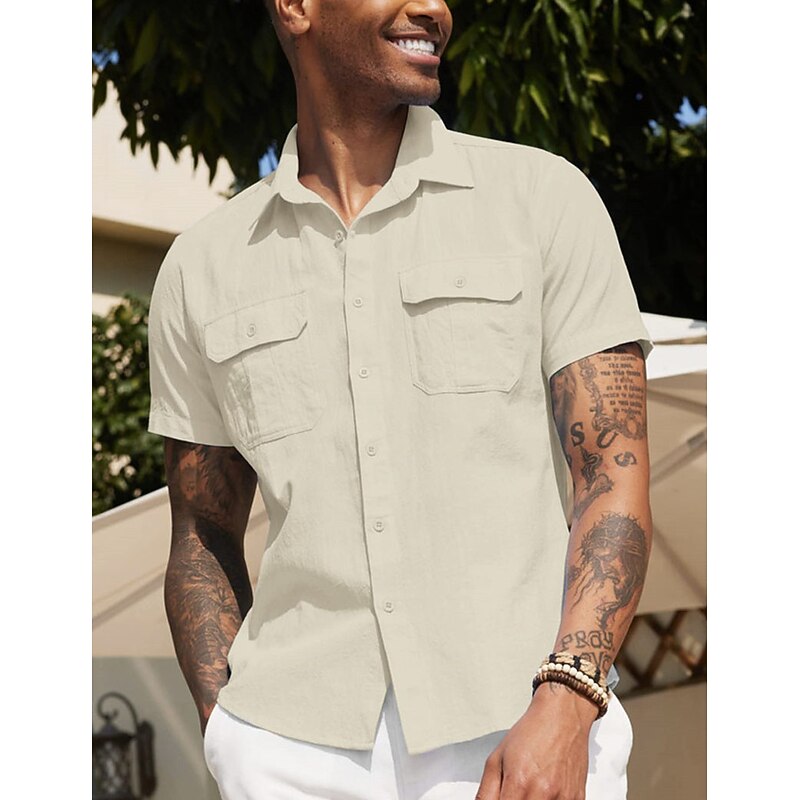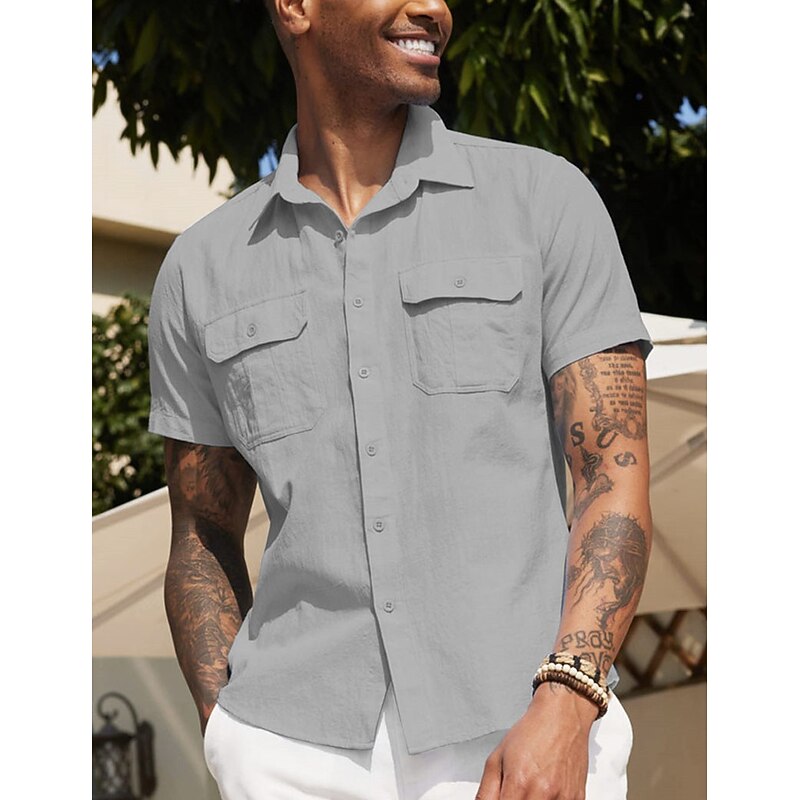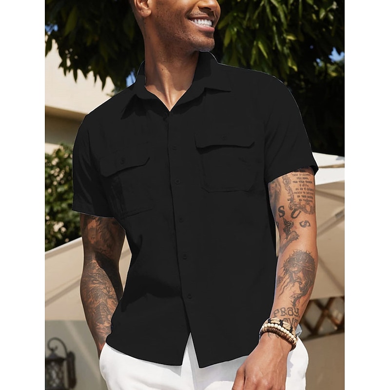 More information about Men's Shirt Summer Shirt Casual Shirt Beach Shirt Button Up Shirt Black White Navy Blue Apricot Gray Short Sleeve Plain Lapel Vacation Daily Front Pocket Clothing Apparel Polyester Fashion Casual