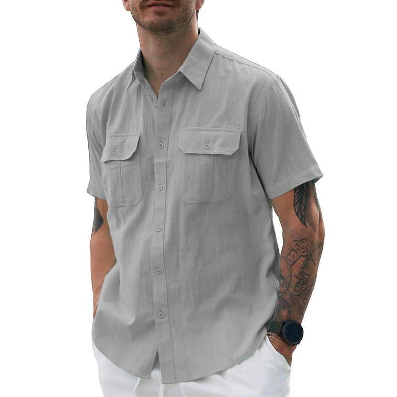 HOT ! Men's Shirt Summer Shirt Casual Shirt Beach Shirt Button Up Shirt Black White Navy Blue Apricot Gray Short Sleeve Plain Lapel Vacation Daily Front Pocket Clothing Apparel Polyester Fashion Casual