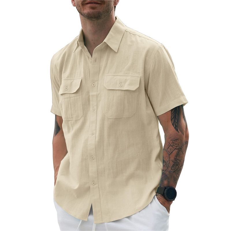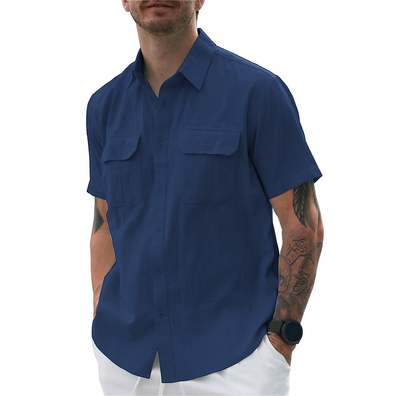 Men's Shirt Summer Shirt Casual Shirt Beach Shirt Button Up Shirt Black White Navy Blue Apricot Gray Short Sleeve Plain Lapel Vacation Daily Front Pocket Clothing Apparel Polyester Fashion Casual 23