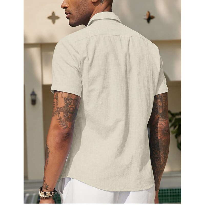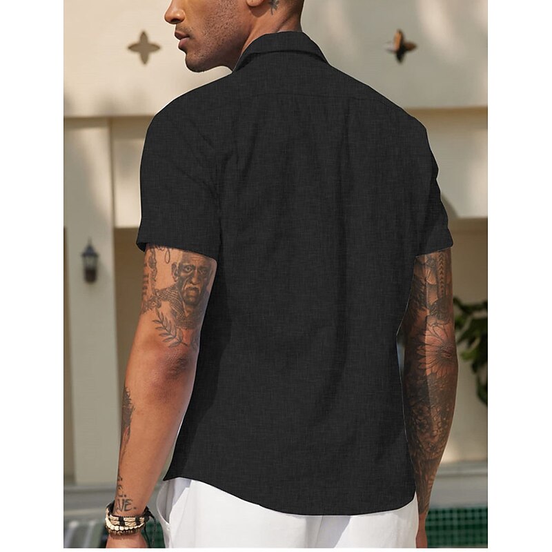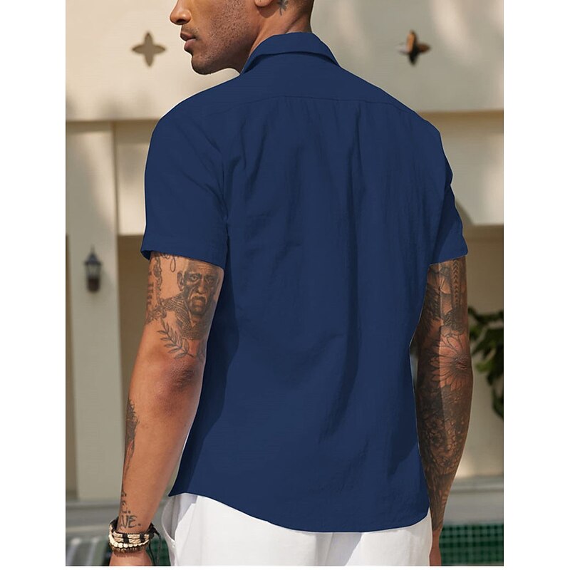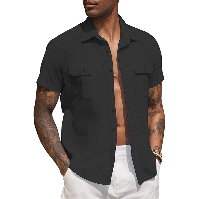 Men's Shirt Summer Shirt Casual Shirt Beach Shirt Button Up Shirt Black White Navy Blue Apricot Gray Short Sleeve Plain Lapel Vacation Daily Front Pocket Clothing Apparel Polyester Fashion Casual 11