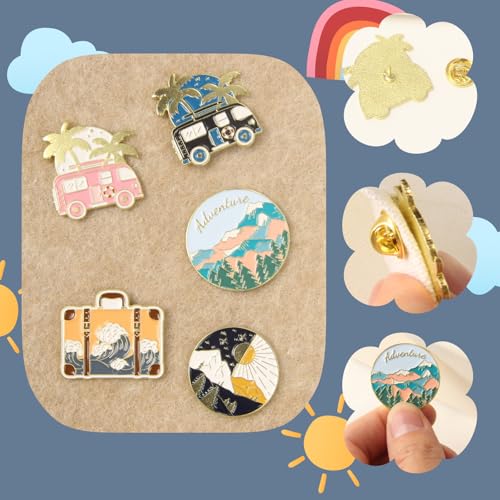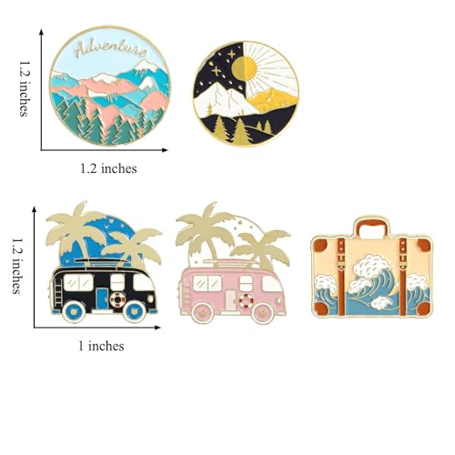 5PCS Tropical Advanture Mountain Wave Enamel Pins Bulk, Cartoon Cute Cool Vibes Briefcase Lapel Backpack Hat Pin Set, Decorative Crooches Button for Jeans, Jackets, Bags, Dress, Shoes 5
