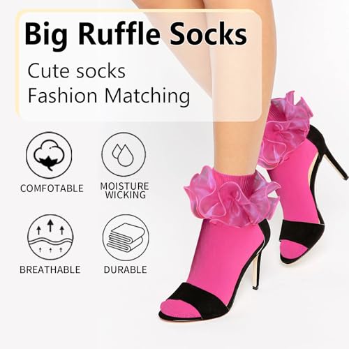 • 【Exquisite Designed Ruffled Socks for Women】 These Big Ruffle Ankle Socks for Women are made of soft cotton fabrics,double-layer lace ruffles,Lace with exquisite patterns,cute and comfortable,bringing you a sexy and youthful feeling,more eye-catching,and giving you a sweet feeling