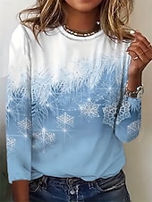 More information about Christmas Women's T Shirt Graphic Snowflake Vintage Fashion Stylish Long Sleeve Crew Neck Regular Tops Daily Weekend Print Blue Spring Fall Winter