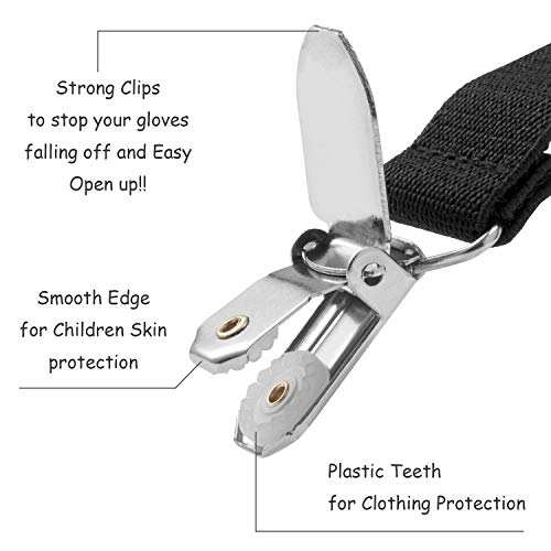 • Proper Size, Wide Applications:The size of toddler mitten clips is 12.5 cm, the middle joint is an elastic band, suitable for children's daily use; Suitable for many ages, help on to the gloves and hold the mittens firmly. Also can be used as bed sheet clips, hat clip, dress clips, clothing clips and table cloth clips to tighten sheet, pants, boots and table cloth and stay on