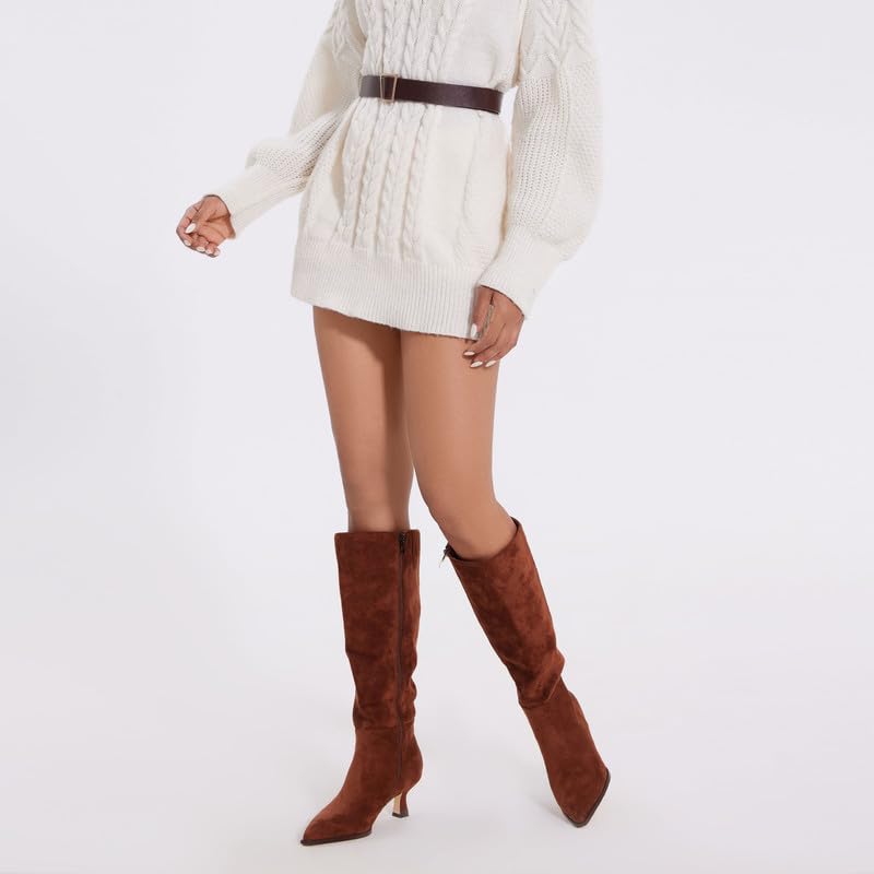 • Trendy Boots: The knee high boots adopt the design of kitten heel and pointed toe, which is stylish and sexy. Side Zipper design for easy to wear on/off.