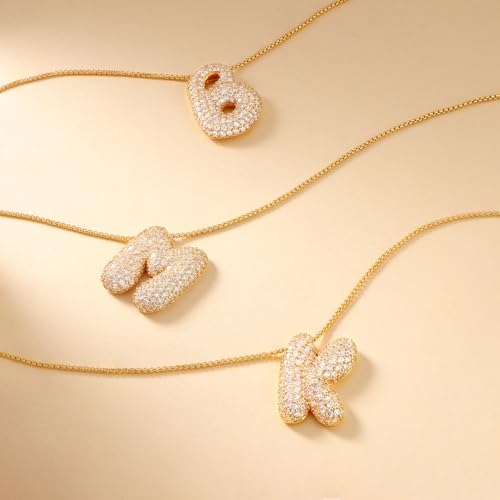 More information about Lcherry Letter Necklace Gold Plated Initial Necklaces for Women Trendy Chunky CZ Balloon Charm Necklace Gifts for Women