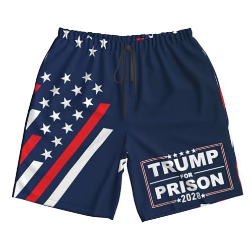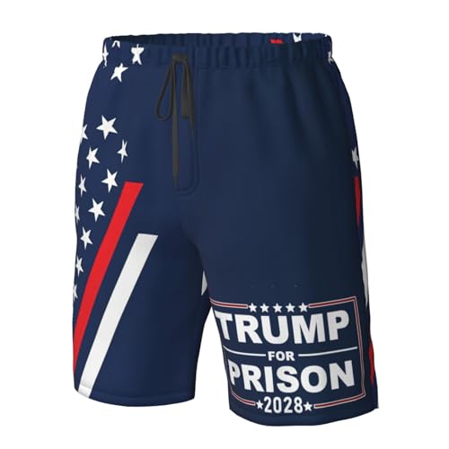 Tr u mp for Prison 2028 Support Tr-u m p 4th of July Mens Swim Trunks Bathing Suit Board Shorts Men's Swimming Suits 4