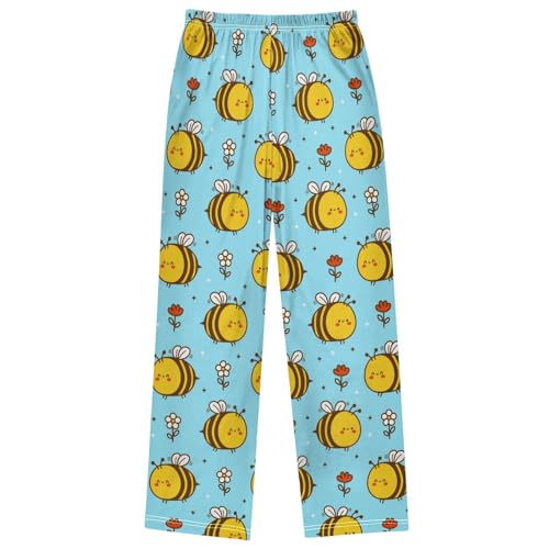 Boy's Lounge Pants Cute Funny Bee Flowers Blue Kids Jogger Pants Elastic Waist Long Bottoms with Pockets 6-14 Years 7
