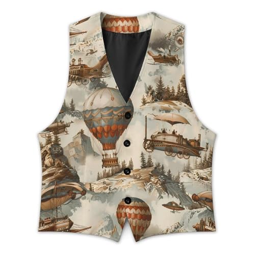 Steampunk Airships Air Balloons Novelty Men's Suit Vest Funny Formal Dress Vests Business Waistcoat 1