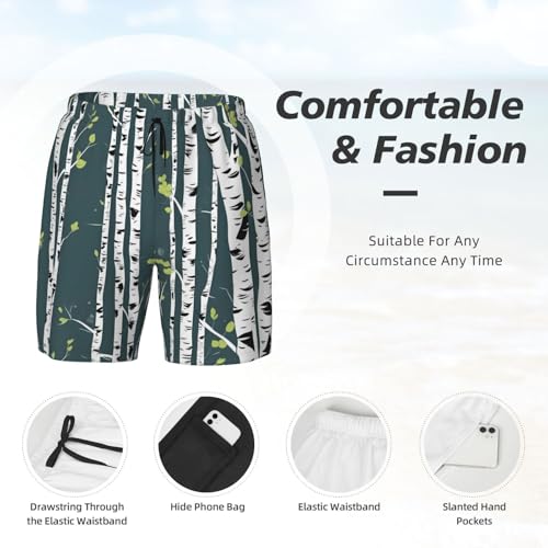 • Occasion: Vintage Beauty Birch Tree Trunks, Short Swim Trunks Men Can Be Suitable For Various Outdoor And Indoor Sports, Beach, Surfing, Swimming.