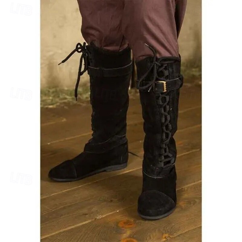 Medieval Renaissance Shoes Knee High Boots Flat Jazz Boots Fancy Dress Men's Celtic Pirate Halloween Masquerade Performance Party & Evening LARP Adults' Shoes 1