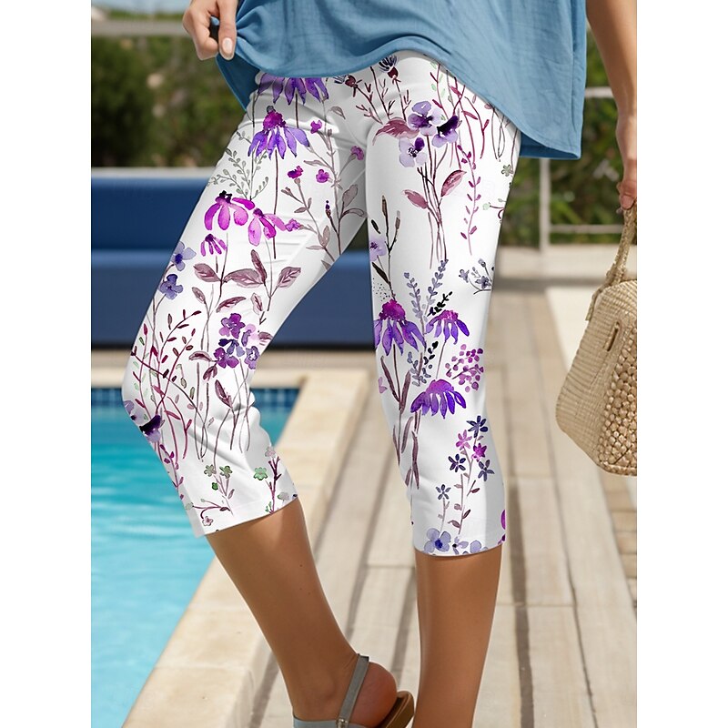 More information about Women's Leggings Capri Pants High Elasticity Vacation Vintage Fashion Full Length High Waist Floral Graphic Printing Thermal Warm Breathable Soft Stretchy Formal Outdoor Vacation