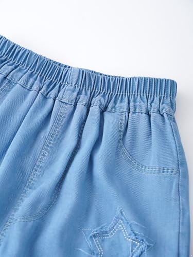 Fabric type: 100% DenimRise style: High RiseLeg style: LongFit type: LooseGirls Wide Leg Jeans :Trendy jeans for girls are made of high-quality denim materials, breathable, skin-friendly and comfortable to wearGirls Casual Denim Jeans Pants :Girl's jeans make your girl look cute and fashionable with star patches and wide-leg designGirls Baggy Jeans :Designed with pockets for carrying the essentials, elastic waistband enhances the comfort and convenience of wearingGirls Loose Denim Pants :distinctive flared jeans are perfect for pairing with denim jacket, sweatshirt, hoodie, pullover, T-shirt, crop top and etcOccasion :Perfect for casual daily wear, school, travel ,holiday ,birthday gift ,vacation ,weekend, birthday party, picnic, amusement park, indoor and outdoor activities Perfect for everyday use. supreme materials and excellent craftsmanship ensure long-lasting durability.