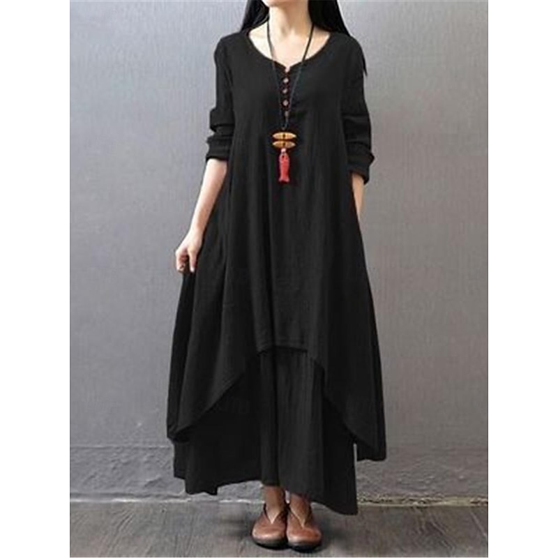 More information about Women's Black White Yellow Summer Spring Maxi Dress Linen-Inspired Dresses White Dress Casual Dress Basic Modern Daily Weekend Loose Fit Plain V Neck